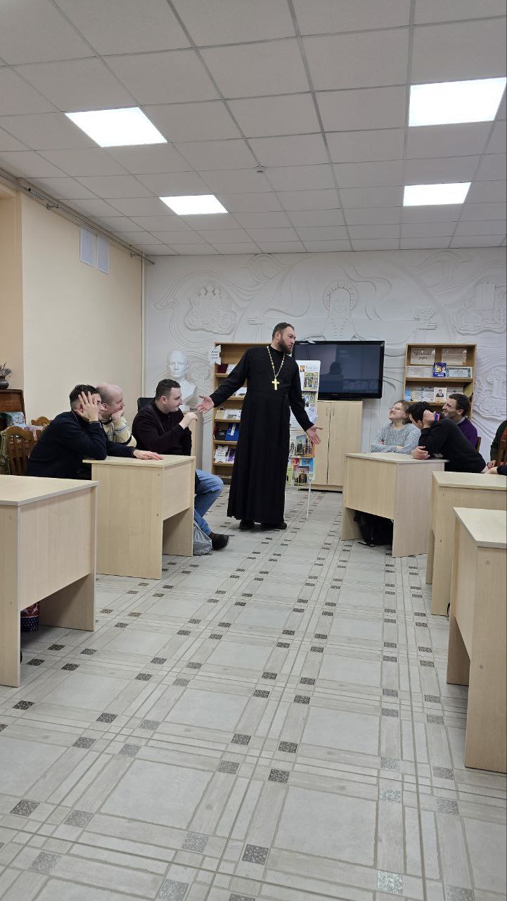 Иерей Николай Пашкевич познакомил присутствующих с выставкой православной литературы, объяснил, кого принято почитать как святых.