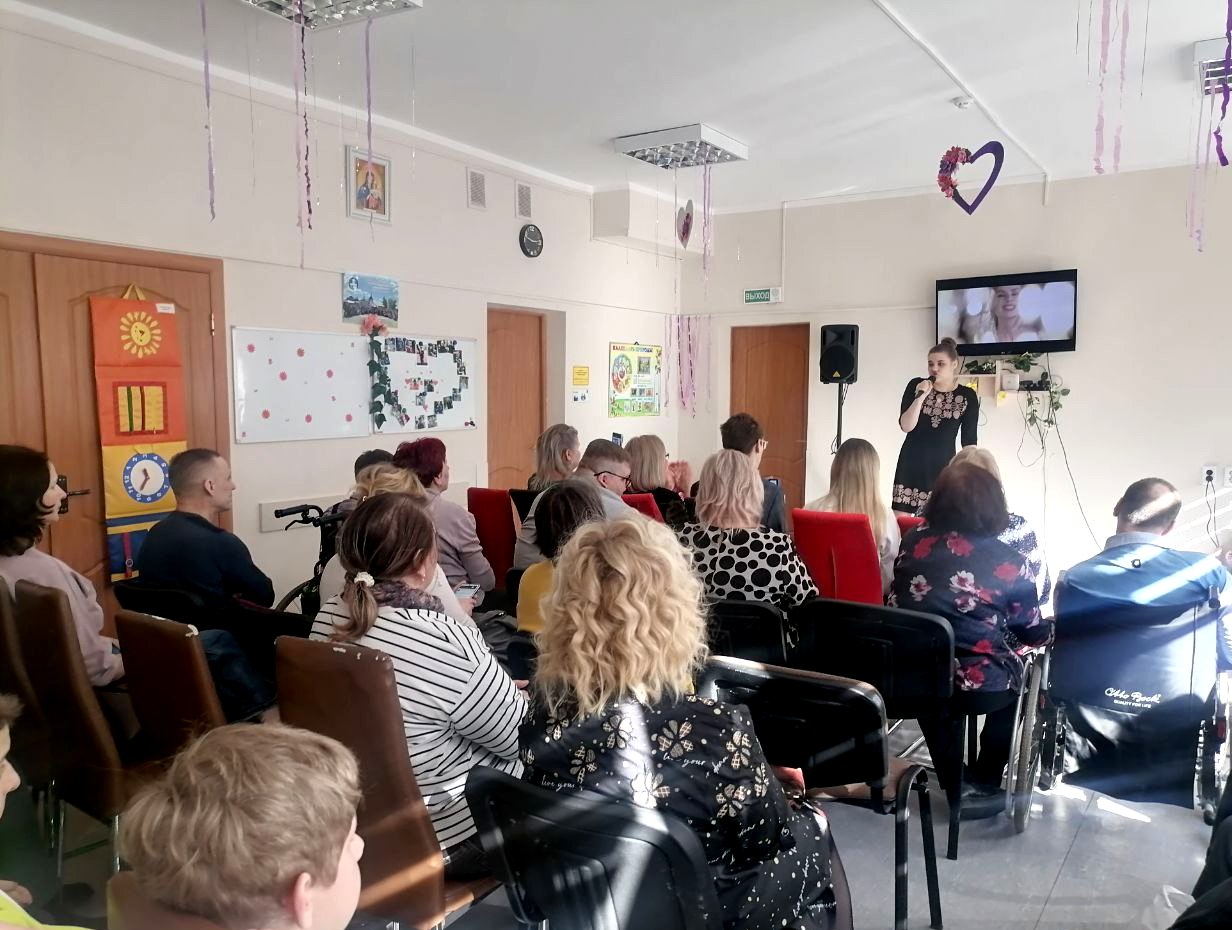 Свое музыкальное поздравление подготовили молодые инвалиды, обслуживаемые в отделении, а также творческий коллектив гимназии №3 г.Барановичи. Особенно приятно, что мамы с детьми принимали участие в концерте. Это инклюзивное мероприятие стало ярким событием, объединившим молодых инвалидов, учащихся, родителей и педагогов.